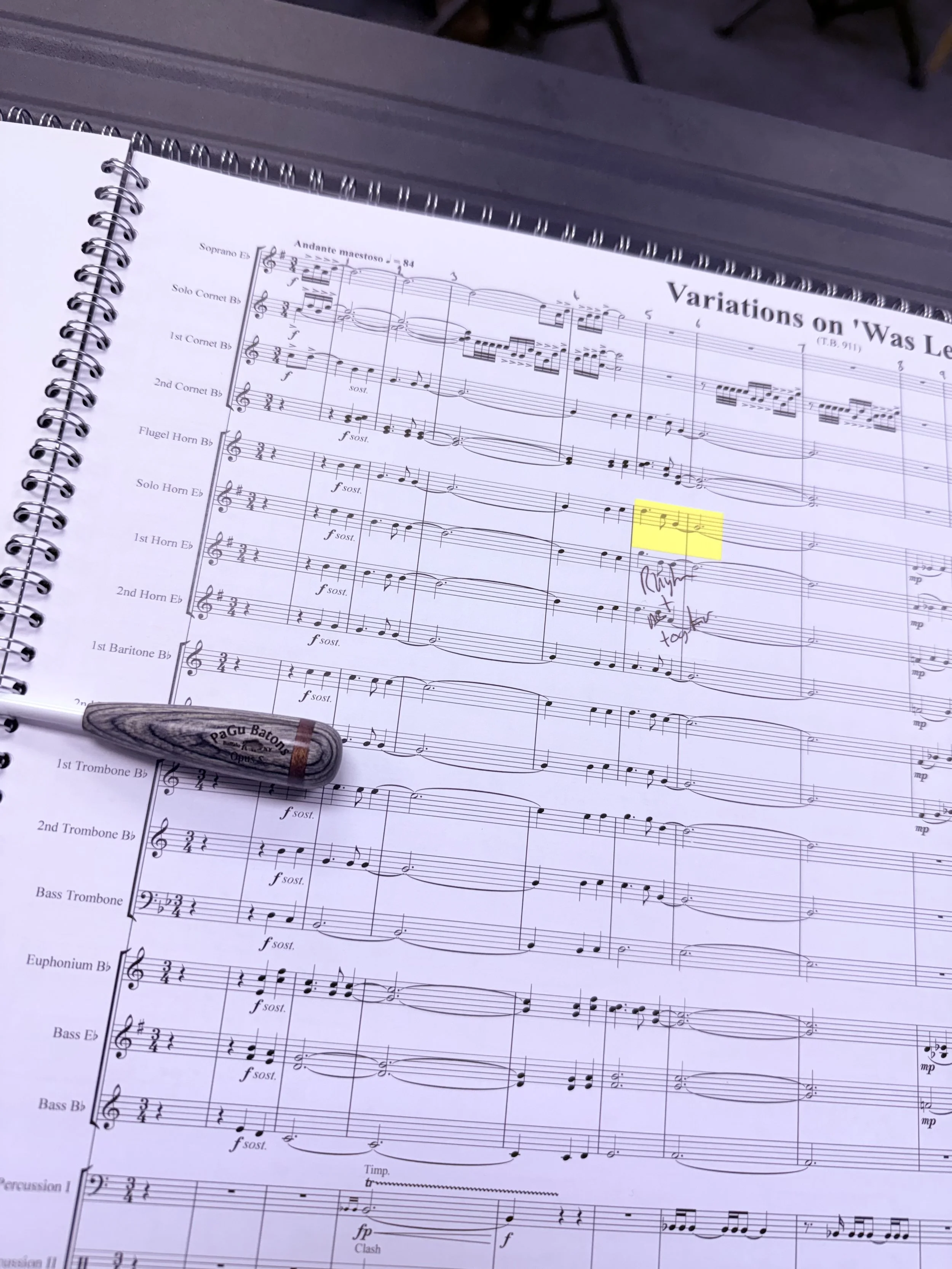 A new baton is always a moment of trepidation for any conductor. Especially as, at current, it is impossible to find the trusty ol’faithful cheap ones I like in the UK- something about Brexit and imports… That said, for the last few years I have experimented with differing orders of custom made batons from Pagu Batons in the USA. Through no fault of the maker I have never been 100% sold on each one I designed- some too long, some too light, some too heavy. A veritable Goldilocks of batons which would 100% suit someone, but each time I got one part of the design wrong, for me. Consequently, for the last 2 years or so I’ve conducted with pencils, straws, fingers, paper clips, a battery, ever shortening old batons, the lid of pen- you name it I’ve waved it at bands. So it was with a little trepidation I made an order for one more baton. (ok two… but don’t tell anyone at my bank!). Perhaps the revelation of perfection in this new baton is why, after just one short week, my obsession with love in ‘Was Lebet’ has seen our band manager rename the area test piece ‘Variations on With Love’.